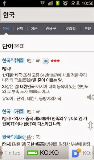 Một vài hình ảnh của ứng dụng từ điển việt hàn android này